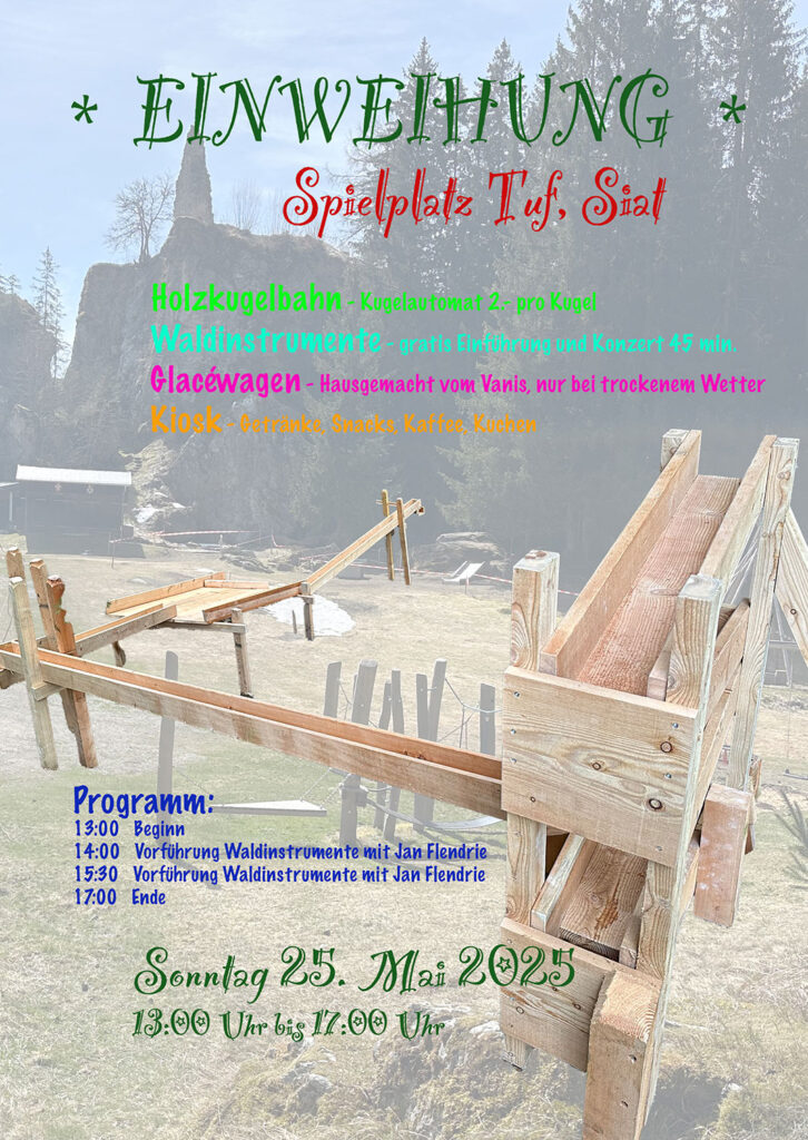 Gerne laden wir Jung und Alt zur Einweihung vom Spielplatz Tuf in Siat ein.